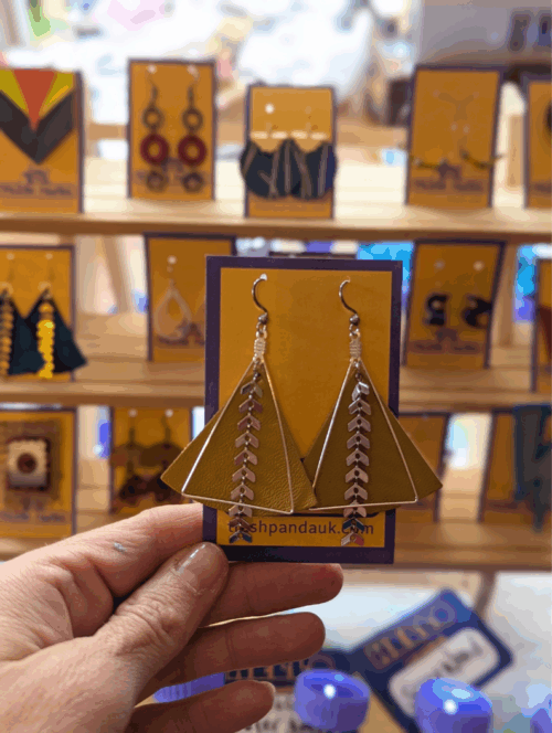These earrings are all about simple geometry done right; bold red triangles that make a statement without shouting. Hand-cut from reclaimed faux leather offcuts, they’re lightweight, sustainable, and completely vegan. Minimal doesn’t have to mean boring.